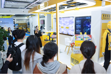 抵达美团北京总部后,同学们先在讲解员的引导下,参观了美团展厅,了解了美团的历史、使命和发展。