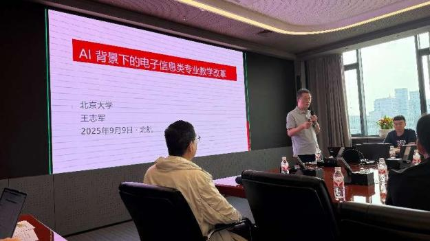 王志军教授以“AI背景下的电子信息类专业教学改革”为题,探讨了AI辅助教学的应用场景与实践路径,提出通过虚拟工程教育平台提升学生实践能力。侯建军教授则结合电子技术课程,分享了辩证逻辑思维在教学中的创新应用,强调理论与实践结合的重要性。