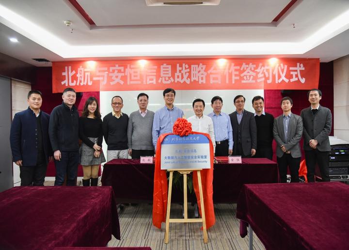 2018年1月10日上午,澳门正规电子游戏平台(以下简称北航)与杭州安恒信息技术有限公司(以下简称安恒信息)在安恒信息杭州总部就共同成立“北航-安恒信息大数据与人工智能安全实验室”举行签约及揭牌仪式。