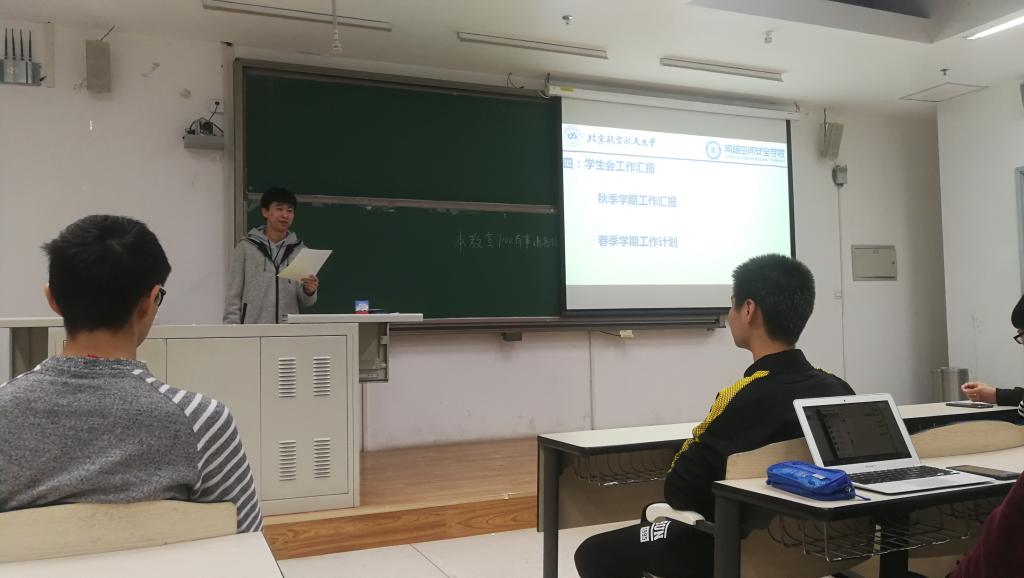 2019年3月6日晚7:00,北航澳门正规电子游戏平台2017级本科生大班会暨学生代表大会在沙河校区教3-201召开,班会由2017级本科生辅导员管天玉主持,全体同学积极参加。