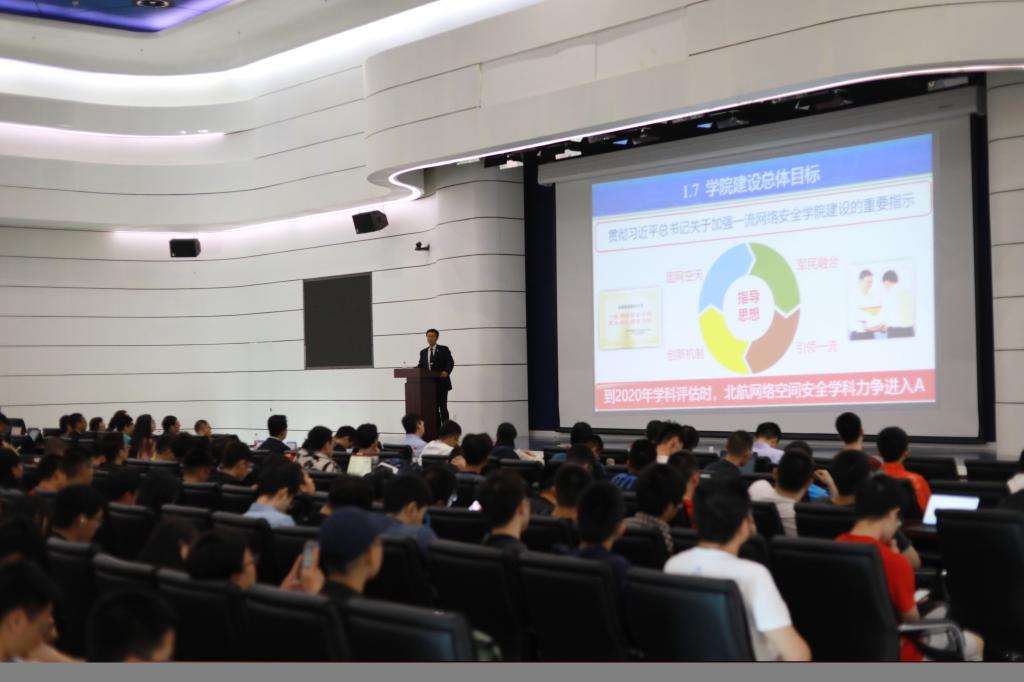 首先,刘建伟教授用黑客入侵飞机控制系统、黑客操纵提款机提款、黑客试图控制人类心脏起搏器等有趣的小视频抓住了同学们的目光,向同学们展现了一场虚拟世界正在进行的战争,让在场的同学对网络空间安全专业产生浓厚的兴趣。