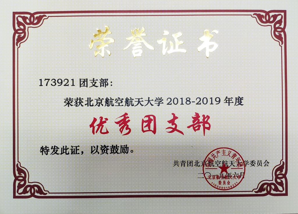 为加强我校共青团的基层组织建设,推动团支部职能化建设,围绕立德树人根本任务,激励基层团支部学习贯彻习近平新时代中国特色社会主义思想,以“四进”为手段,以“四信”为目标,切实学习和践行社会主义核心价值观,弘扬北航“四爱精神”,深入开展“青春心向党·建功新时代”教育实践,创先争优,激励和引导广大团员大力弘扬爱国主义精神,推动各级团组织工作水平的提高。校团委在全校开展2018—2019学年度校 “优秀团支部”评选活动,澳门正规电子游戏平台173921团支部获2018—2019学年度校“优秀团支部”荣誉称号,予以表彰。