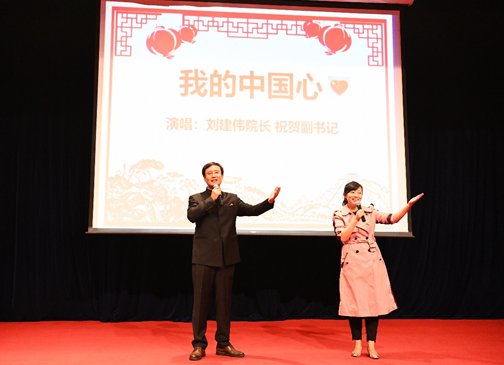 晚会节目精彩纷呈,刘建伟院长和祝贺副书记演唱《我的中国心》,男声中气十足,女声高亢有力,唱出了澳门正规全体师生“使命在肩,奋斗有我”的爱国奋斗精神。台下同学为刘院长祝书记送上了鲜花,掌声雷鸣。热情洋溢的歌声引得全场高呼,“请院长再来一首”,随后,院长又即兴演唱了一首军歌《塔里木河》,这首歌歌词豪迈大气,院长富有激情的声音完美演绎了这首歌对祖国美好河山的热爱。接下来的节目多以弹唱为主,马超平同学的《春风十里》将民谣平淡又深情的意境展现出来,魔术《拍钉子》惊险刺激,博得阵阵掌声。《等你下课》唱出了同学们之间的真挚情感,“土木年华”组合的《一生有你》婉转深情。