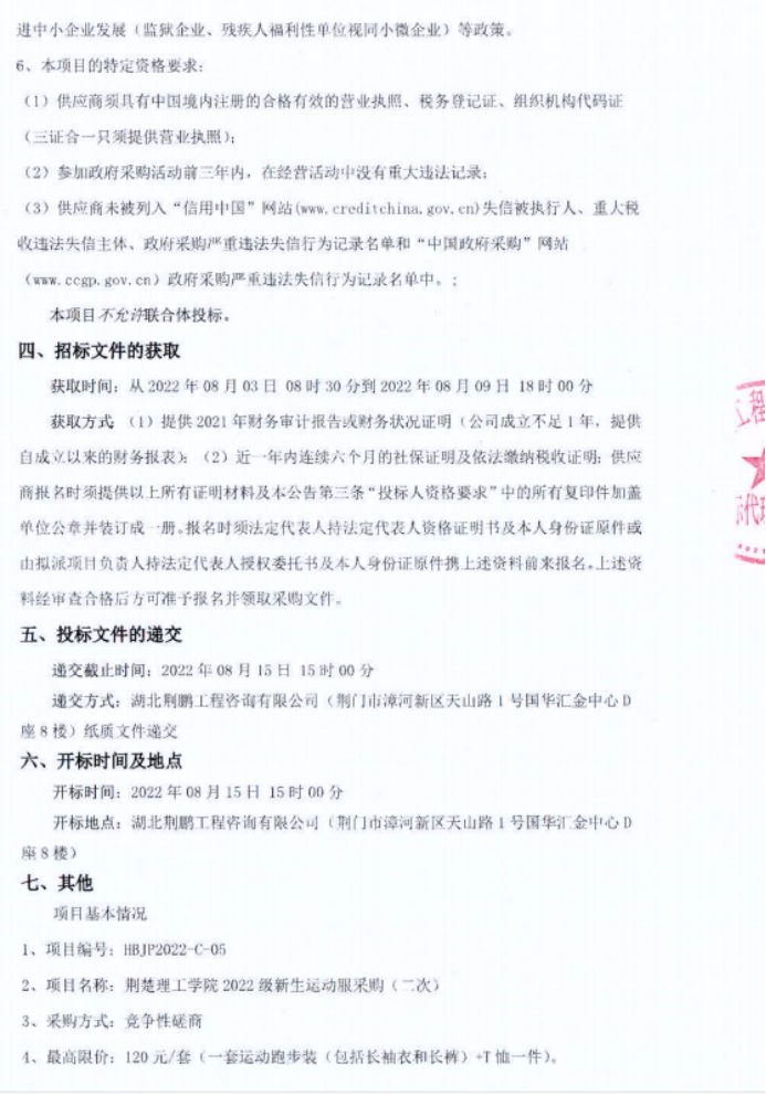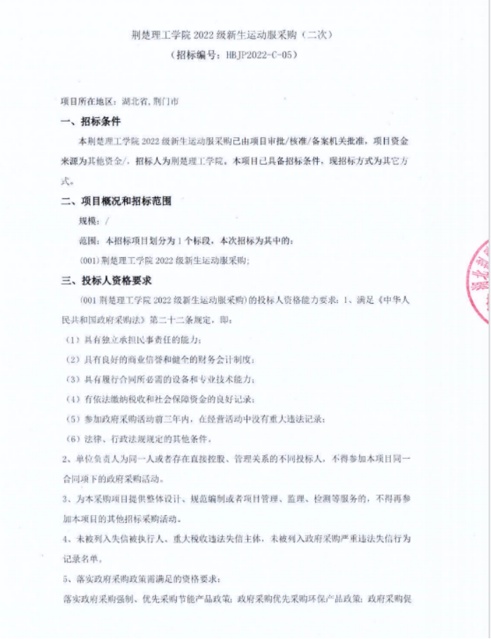 开云kaiyun官方网站2022级新生运动服采购项目招标公告(二次)(推送)